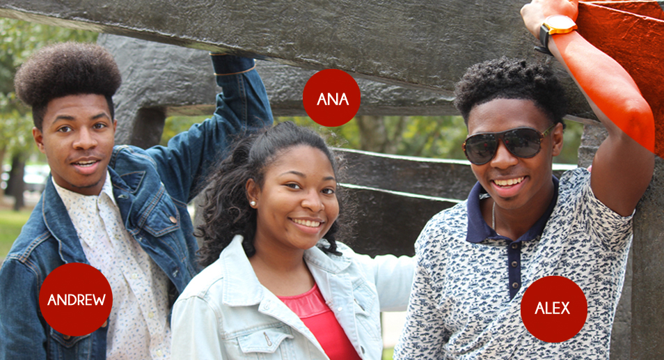 Love theater, art and design " Web design" and film making he loves writing and creating stories bringing them to life in film. Former Varsity Cheerleader at KIPP Sunny Side High School- loves shopping and reading, cooking and tasting fine foods. Alex. Loves playing his guitar, He is a sports fan, he has played football in middle school, high school as running back, loves playing basketball, and is a great gymnast (flipping with no hands) started doing this at the age of 6, would just walk through the house and flip with no hands.... Some people remember him for it. Andrew Ana Alex